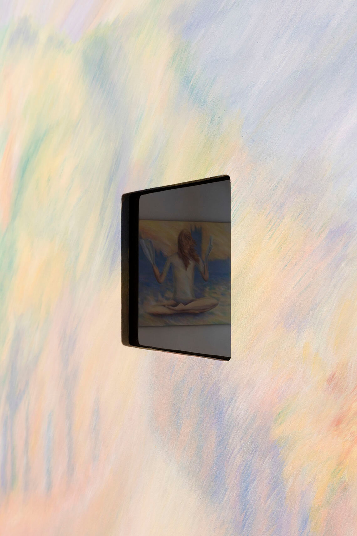 Pastel and acrylic on wood and glass